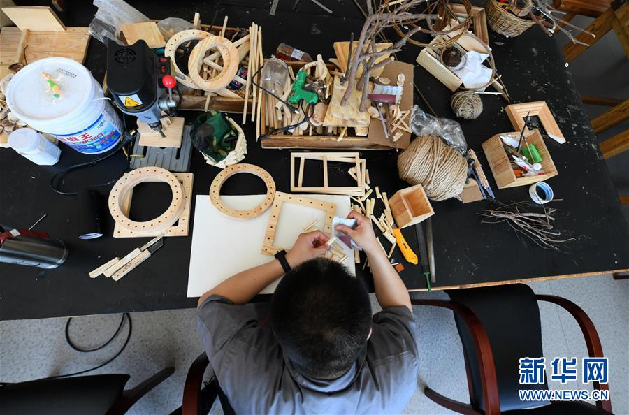 7月14日,一名残疾人在善满家园残障人综合服务中心练习制作手工艺品。新华社记者 林宏 摄