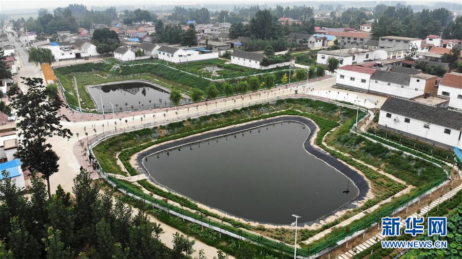 汶上县苑庄镇大王庄村两处废弃的坑塘如今成了养鱼池(7月14日摄,无人机照片)。 近年来,山东省汶上县在乡村振兴过程中整治乡村环境、发展生态产业,建设美丽宜居的绿色乡村。 新华社记者 王凯 摄