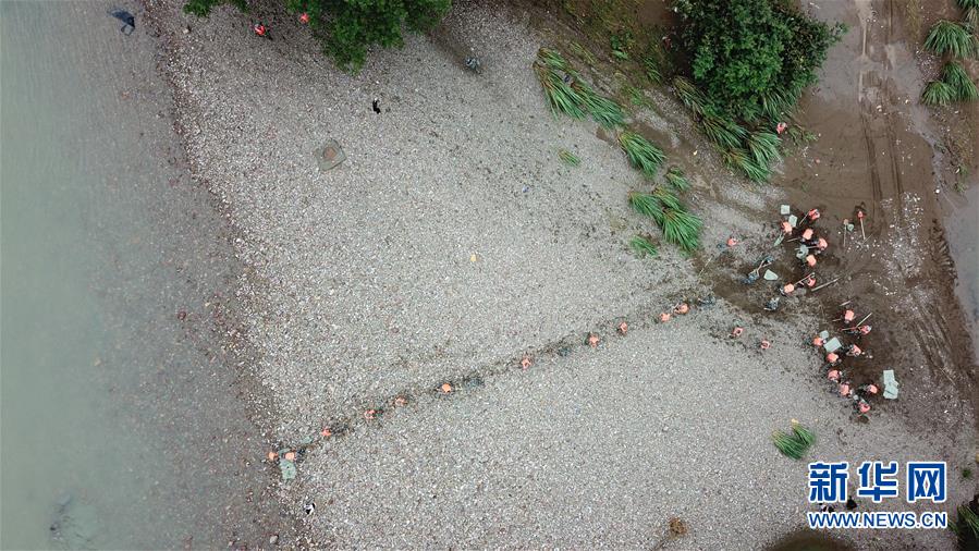 这是睦和村紧靠长江的荔枝果园(7月14日摄,无人机照片)。
