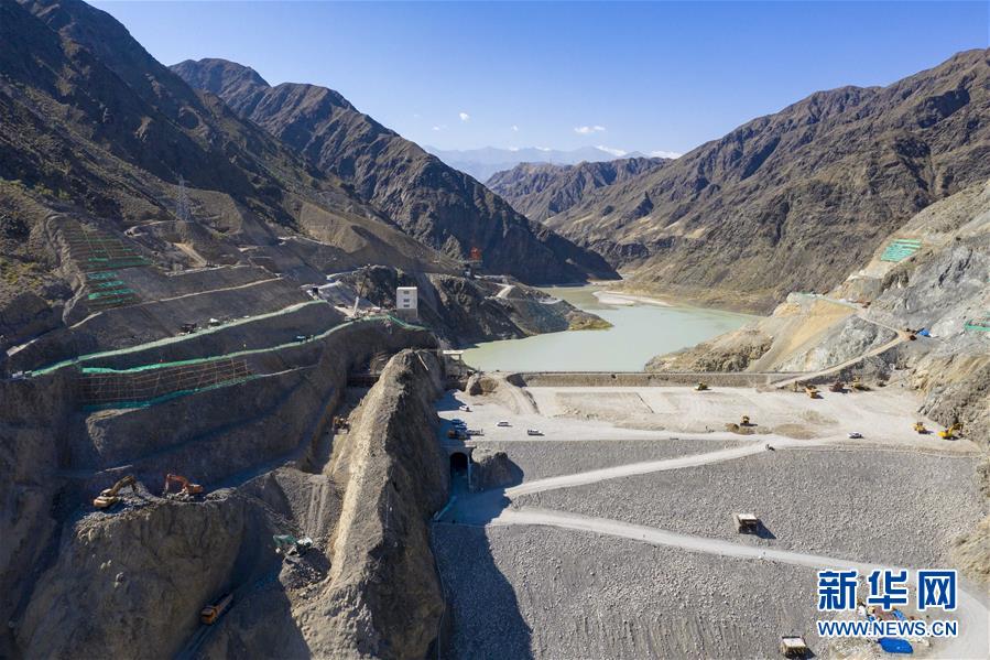7月15日拍摄的新疆精河下天吉水利枢纽二期工程施工现场(无人机照片)。 精河下天吉水利枢纽工程是新疆重点水利工程,位于新疆博尔塔拉蒙古自治州精河县境内。眼下,二期工程建设正稳步推进,300多名工人、数十台大型机械在工地忙碌。二期工程于2019年8月开工,计划总工期为31个月,包括坝体加高、坝肩溢洪道、引水发电系统、地面厂房建设等。工程建成后,可满足精河灌区43万多亩农田的灌溉需求,同时提升精河流域防洪能力,促进精河县电力和工业发展。 新华社记者 胡虎虎 摄