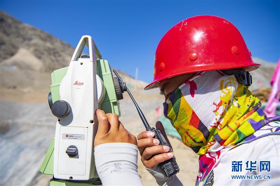 7月15日,技术员李德渊在新疆精河下天吉水利枢纽二期工程施工现场测量。 精河下天吉水利枢纽工程是新疆重点水利工程,位于新疆博尔塔拉蒙古自治州精河县境内。眼下,二期工程建设正稳步推进,300多名工人、数十台大型机械在工地忙碌。二期工程于2019年8月开工,计划总工期为31个月,包括坝体加高、坝肩溢洪道、引水发电系统、地面厂房建设等。工程建成后,可满足精河灌区43万多亩农田的灌溉需求,同时提升精河流域防洪能力,促进精河县电力和工业发展。 新华社记者 胡虎虎 摄