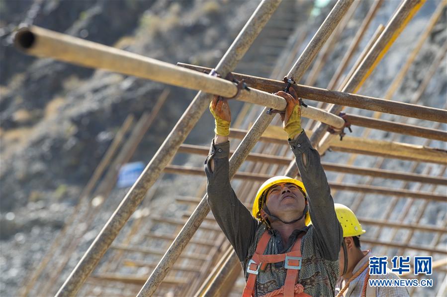 7月15日,工人在新疆精河下天吉水利枢纽二期工程施工现场作业。 精河下天吉水利枢纽工程是新疆重点水利工程,位于新疆博尔塔拉蒙古自治州精河县境内。眼下,二期工程建设正稳步推进,300多名工人、数十台大型机械在工地忙碌。二期工程于2019年8月开工,计划总工期为31个月,包括坝体加高、坝肩溢洪道、引水发电系统、地面厂房建设等。工程建成后,可满足精河灌区43万多亩农田的灌溉需求,同时提升精河流域防洪能力,促进精河县电力和工业发展。 新华社记者 胡虎虎 摄