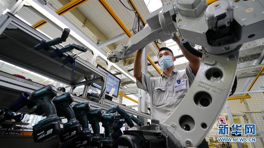 7月16日,唐山松下产业机器有限公司的工人在调试焊接机器人。 近年来,河北省唐山高新技术产业开发区以焊接产业龙头企业为带动,着力打造焊接产业集群,产品涵盖了焊接设备、机器人及其系统、切割设备、焊接材料及其辅助机具等多个领域,形成了完整的焊接产业体系。目前,该区拥有焊接产业企业十余家,2019年产值超20亿元。 新华社记者 牟宇 摄