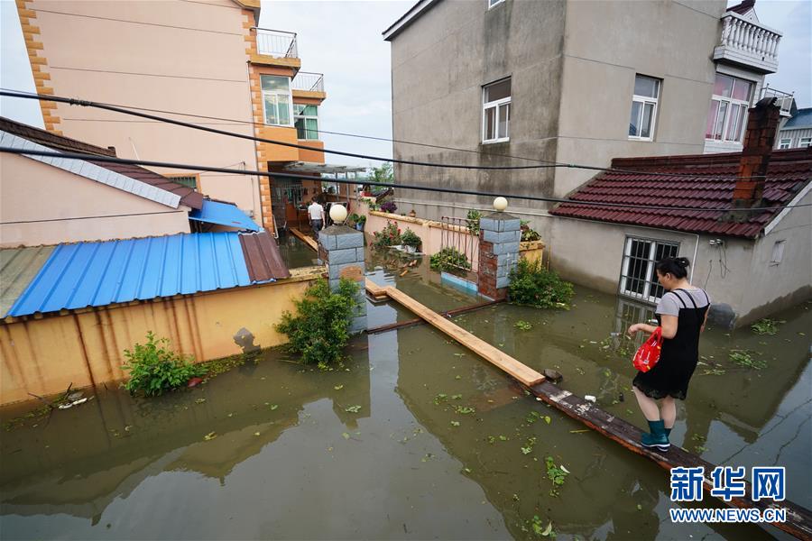 7月16日,南京市溧水区和凤镇张家社区诸家村村民走回家中。 受降雨以及水阳江上游来水等因素影响,江苏省南京市高淳区、溧水区境内的石臼湖水位持续上涨。7月16日16时45分,石臼湖蛇山站水位达12.60米,超警戒水位2.20米,超保证水位0.10米,且预测水位将继续上涨。 新华社记者 季春鹏 摄