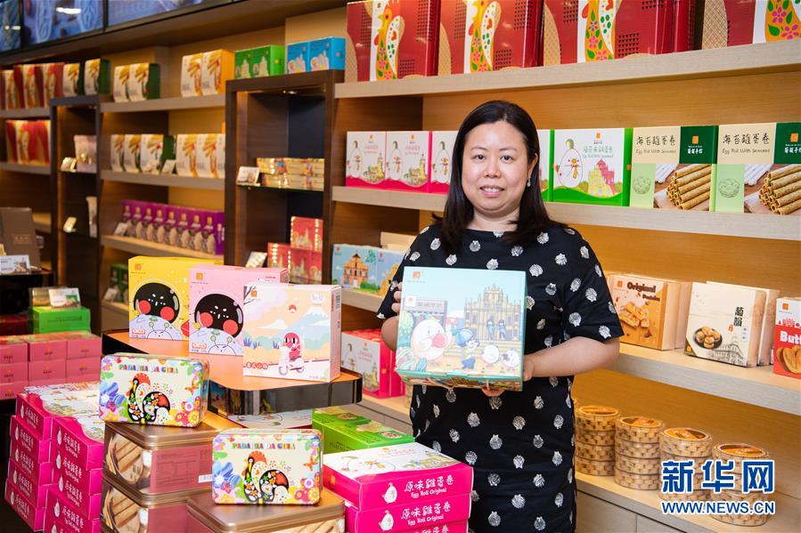 7月15日,创业者甄文静在澳门地堡街的葡韵手信店里。 “80后”甄文静是葡韵手信的主要负责人,致力于推动澳门文化产业发展。随着大湾区的规划发展,甄文静根据集团发展需要,在广东江门投资设厂,并开设门店及网店,推广澳门特色文化产品。 新华社记者 张金加 摄