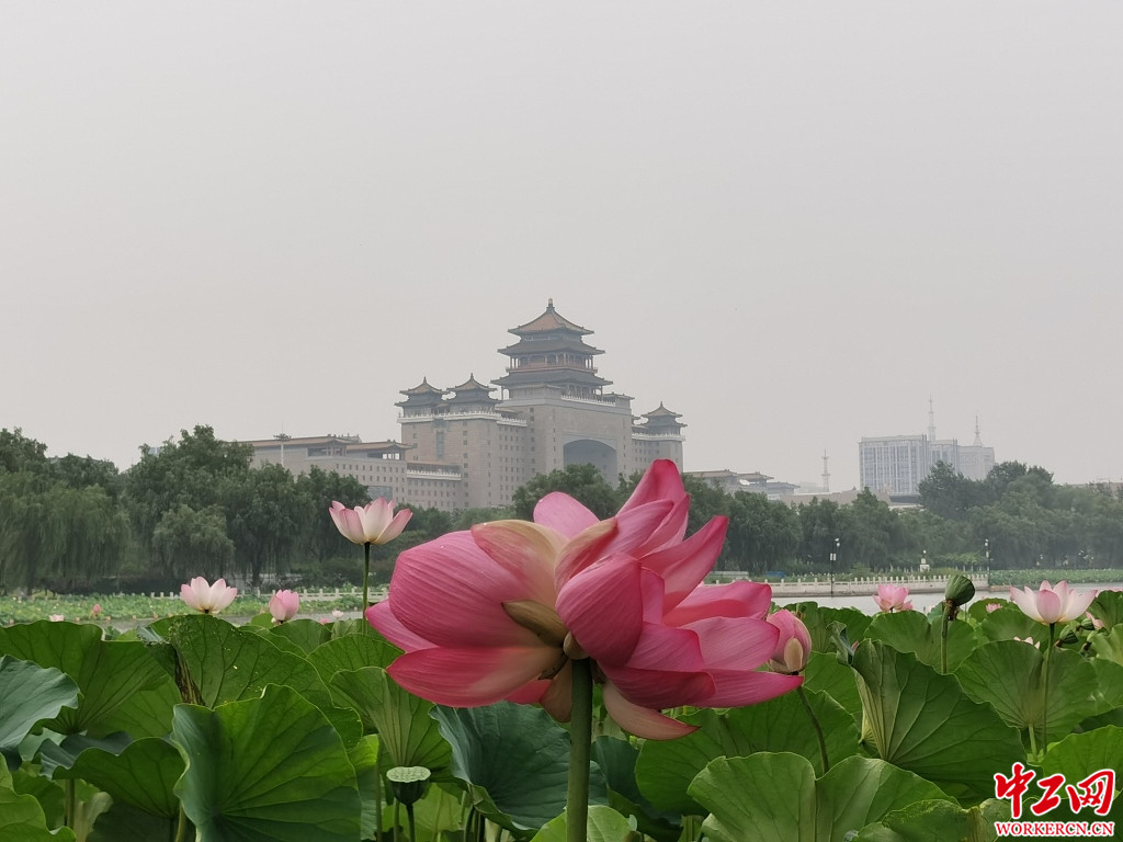 北京:莲花池公园并蒂莲盛开吸引游客围观
