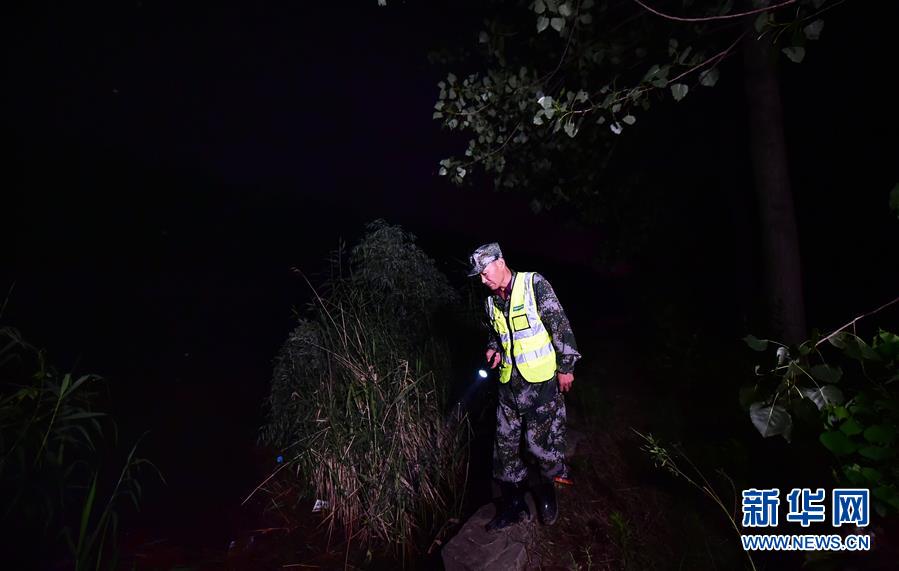 在江苏省宿迁市,黄宝军在黄河古道的河堤上巡堤查险(7月15日摄)。 新华社记者 李雨泽 摄