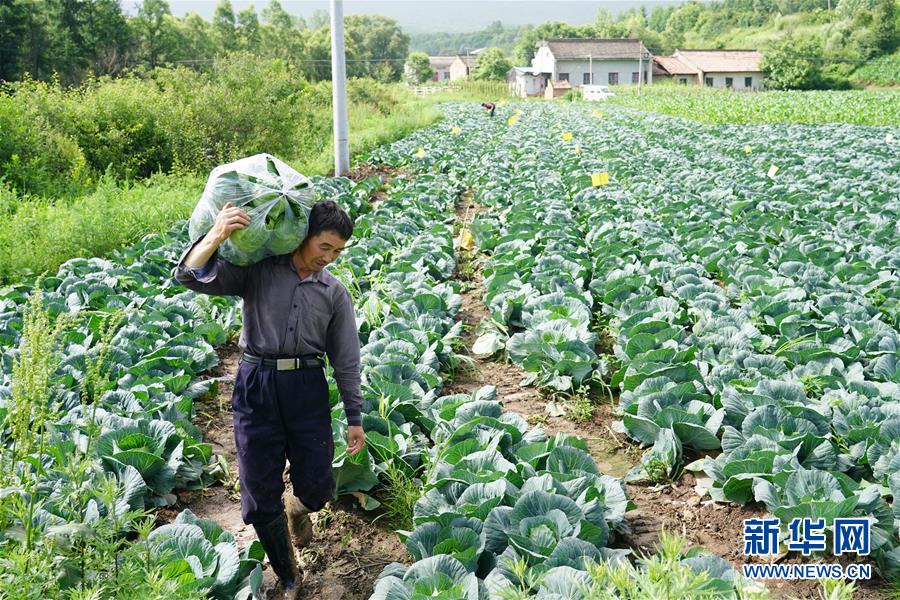 7月17日,太白县咀头镇黄凤山村村民收获甘蓝。 近年来,地处秦岭腹地的陕西太白县依托其海拔高、生态好等自然资源禀赋,在全县十余万亩耕地上合理发展产业,积极推动种植业向“小而美、小而精”的高山蔬菜、水果等方向发展,提高农产品附加值,促进群众增收。2019年,太白县高山蔬菜产量为45万吨,实现产值4.5亿元;莓类产业产量1412吨,产值1.05亿元。 新华社记者 邵瑞 摄