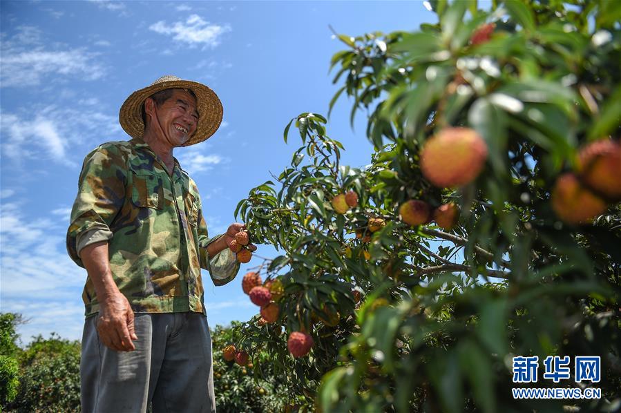 村民在海口施茶村内采摘荔枝(5月16日拍摄)。 新华社记者 蒲晓旭 摄