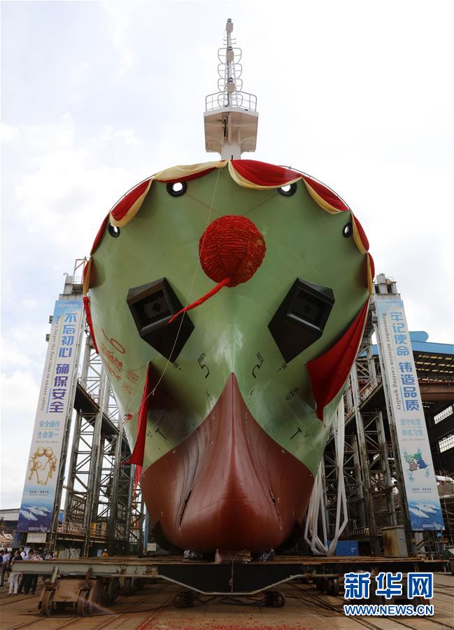 7月18日拍摄的“实验6”号新型地球物理综合科学考察船。新华社记者 黄国保 摄