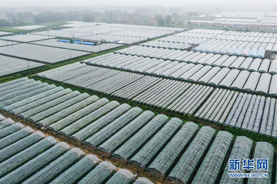 7月18日拍摄的宿城区陈集葡萄产业园(无人机照片)。该产业园目前已建成面积达2300亩,促进当地农民就近就业增收。 新华社记者 杨磊 摄