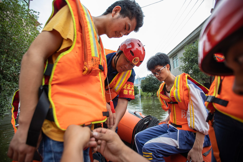 人民网北京7月20日电 (朱紫阳)7月19日,湖北消防救援总队增援江西抗洪突击队出动38人、6车、6艘舟艇,分成4个战斗编队转战九江市湖口县舜德乡灰山王家湾,屏峰村皂湖,青竹村,荊桥村等4个行政村积水转移点,为结束中考返家的考生及当地人民群众充当“摆渡人”。