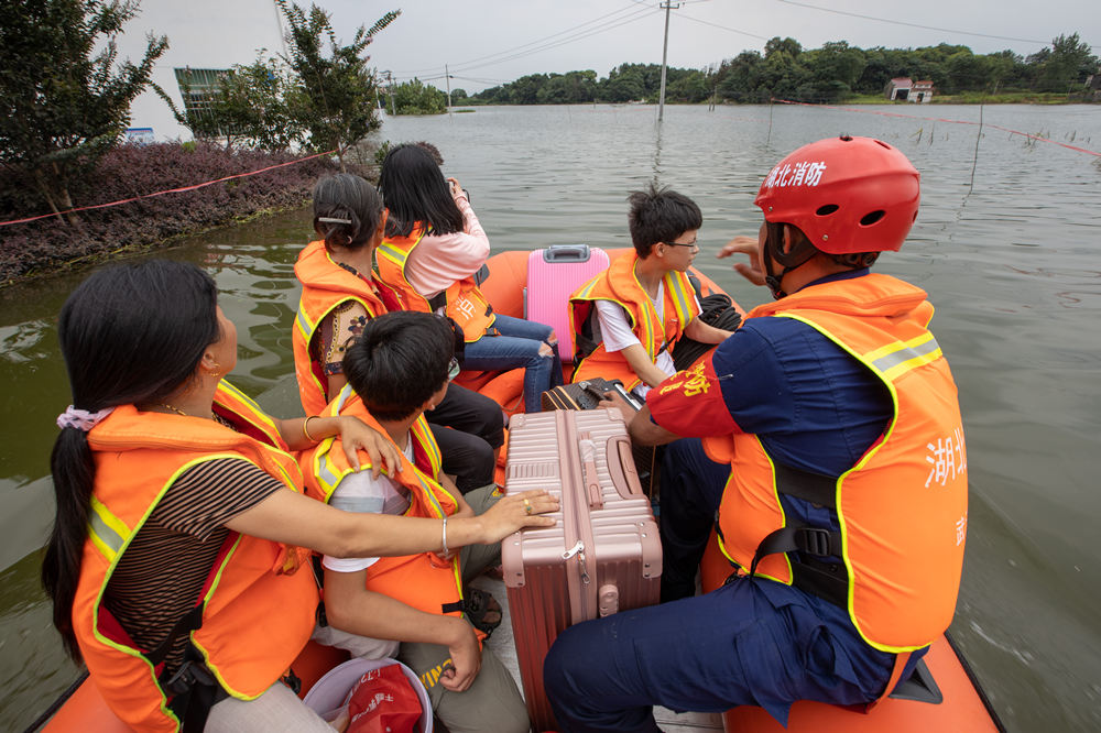 人民网北京7月20日电 (朱紫阳)7月19日,湖北消防救援总队增援江西抗洪突击队出动38人、6车、6艘舟艇,分成4个战斗编队转战九江市湖口县舜德乡灰山王家湾,屏峰村皂湖,青竹村,荊桥村等4个行政村积水转移点,为结束中考返家的考生及当地人民群众充当“摆渡人”。