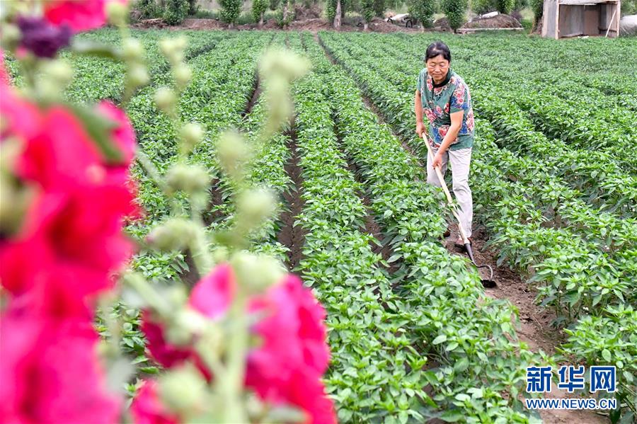 7月19日,东风镇东七家子村村民姜育珍在家中庭院里的辣椒地除草。 新华社记者 安路蒙 摄