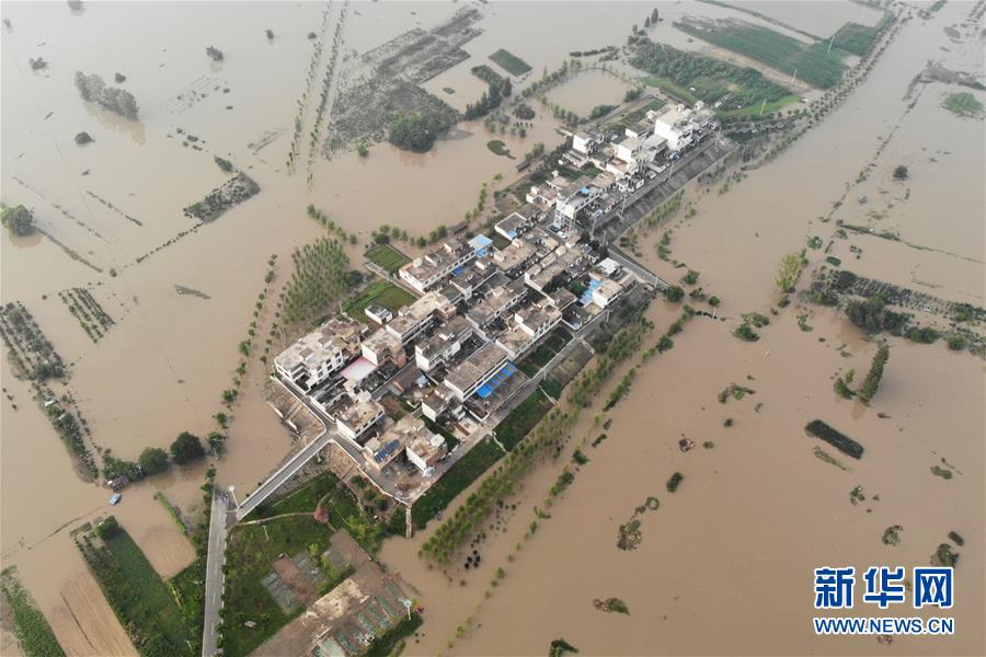 这是7月20日拍摄的被洪水包围的郑台孜庄台(无人机照片)。