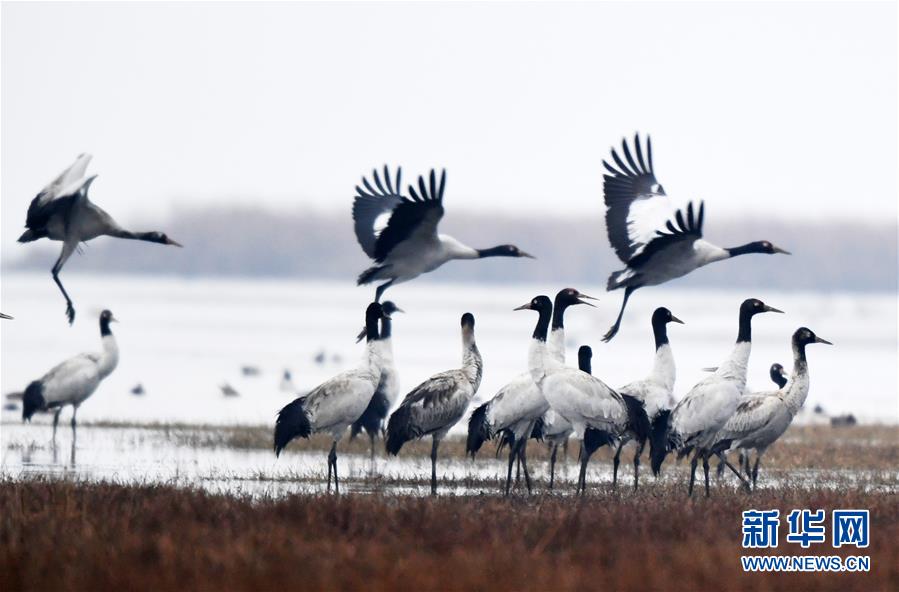 在草海国家级自然保护区越冬的黑颈鹤(2019年12月11日摄)。新华社记者 杨文斌 摄