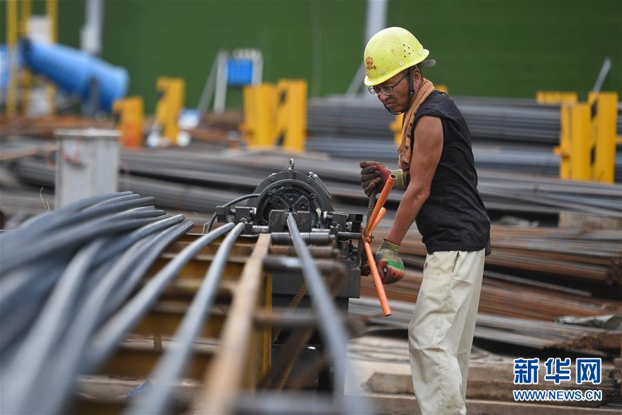 7月22日,工人在杭州地铁7号线建设三路站工地作业。 近日,杭州地铁7号线江南段54个盾构区间均实现安全洞通,项目正处于主体施工阶段。 杭州地铁7号线为“亚运专线”之一,线路长约47.48公里,共设车站24座,建成后将联系杭州主城区和萧山国际机场。 新华社记者 黄宗治 摄