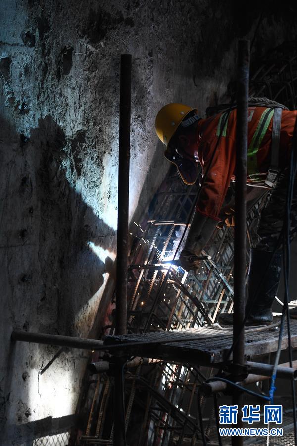 7月22日,工人在杭州地铁7号线建设三路站地下车站施工作业。 近日,杭州地铁7号线江南段54个盾构区间均实现安全洞通,项目正处于主体施工阶段。 杭州地铁7号线为“亚运专线”之一,线路长约47.48公里,共设车站24座,建成后将联系杭州主城区和萧山国际机场。 新华社记者 黄宗治 摄