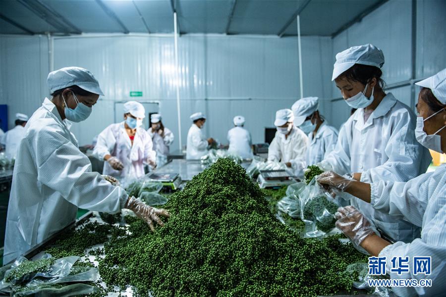 在桐梓县容光镇的一家加工厂,工人在包装花椒(7月22日摄)。 近年来,贵州省遵义市桐梓县因地制宜,鼓励群众种植花椒,发展花椒产业。通过“龙头企业+合作社+农户”模式,促进花椒产业集约化、标准化发展。目前,全县花椒种植面积达17.52万亩,共有29000多户农户参与,其中有4724户是贫困户,花椒产业已成为当地群众脱贫增收的重要产业之一。 新华社记者 陶亮 摄