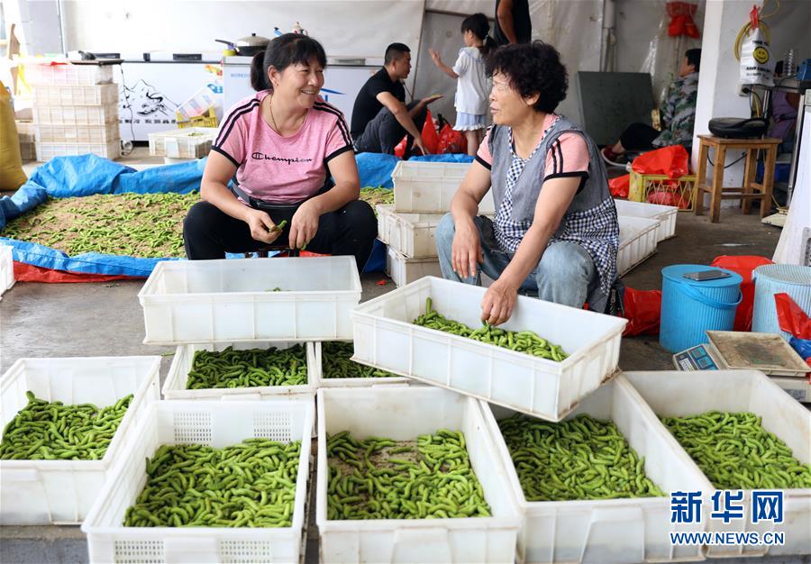 在江苏省灌云县向阳路农贸市场,商户在销售豆丹(7月20日摄)。 豆丹,俗称豆青虫,以大豆等农作物叶子为食,一度被视为害虫。而在江苏省灌云县,豆丹却是一道家喻户晓的美食,市场售价每公斤超百元,养殖豆丹成为农民增收的特色产品。目前,灌云全县豆丹养殖面积约20000亩,是全国最大的豆丹交易集散地,形成了集豆丹养殖、销售、加工于一体的完整产业链,带动了数万人就业。为打造豆丹品牌,灌云县已连续举办九届“豆丹美食文化节”,灌云的餐馆因擅长烹饪豆丹,吸引全国各地的食客慕名而来。 新华社发(刘浏 摄)