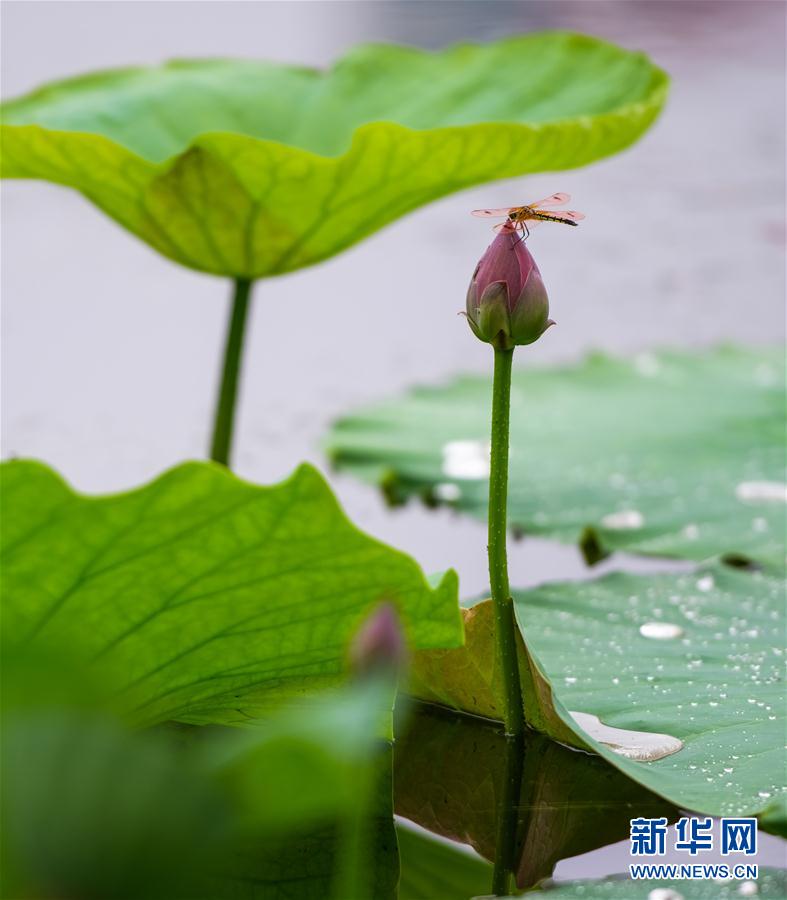 这是7月25日在呼和浩特满都海公园拍摄的荷花。 当日,内蒙古呼和浩特市迎来阵雨天气,满都海公园内的荷花在雨中别有一番风情。 新华社记者 连振 摄