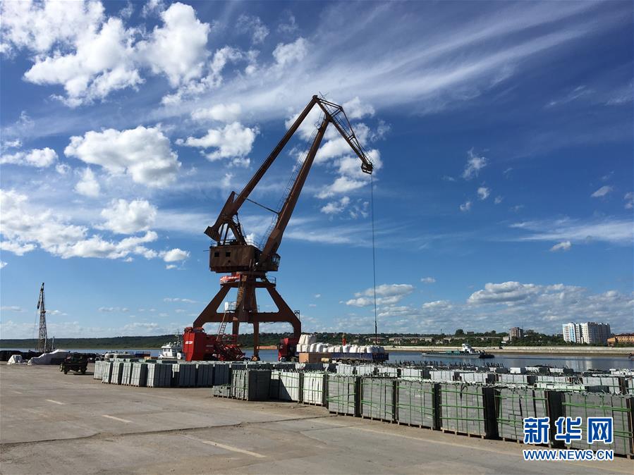 这是黑龙江黑河口岸货运场作业现场(7月22日摄)。 新华社记者 管建涛 摄