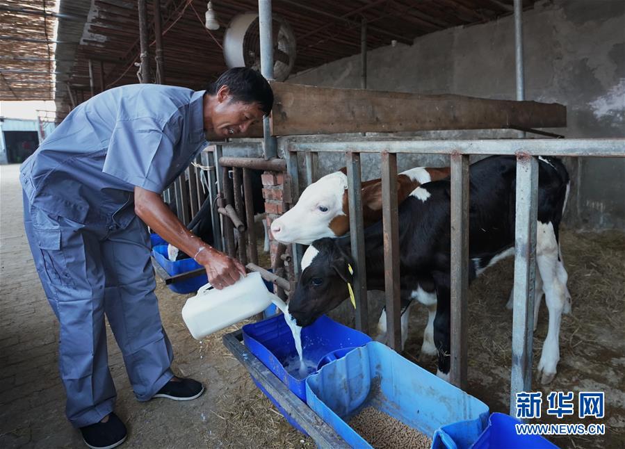 7月25日,唐山市丰南区南孙庄乡一家奶牛养殖厂的工人在喂养小牛犊。 河北省唐山市丰南区加快畜牧业结构调整,采取“公司+合作社+农户”的模式推动畜牧业标准化规模养殖,实现奶牛产业和肉牛产业高质量发展,带动群众增收,助力乡村振兴。据介绍,目前丰南区奶牛养殖达1.44万头,肉牛存栏达2.45万头,带动1200多农户增收。 新华社记者 杨世尧 摄