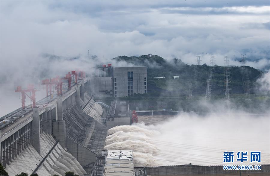 7月26日在湖北省宜昌市秭归县拍摄的三峡大坝。 水利部长江水利委员会水文局26日14时发布消息说,“长江2020年第3号洪水”在长江上游形成,预计27日晚三峡水库最大入库流量在60000立方米/秒左右。 新华社发(郑家裕 摄)