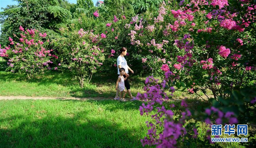 7月26日,村民在栾卸村一处花园游玩。 盛夏,位于太行山区的河北省沙河市栾卸村满目葱茏,山水、田园、民居构成一幅美丽乡村图景。 新华社记者 牟宇 摄