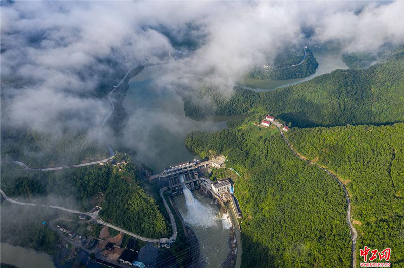 2020年7月27日,湖北省襄阳市保康县马桥镇雷公滩水库正在泄洪。 杨韬/人民视觉