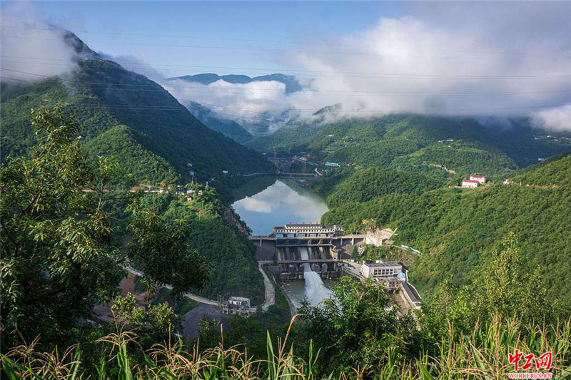 2020年7月27日,湖北省襄阳市保康县马桥镇雷公滩水库正在泄洪。杨韬/人民视觉