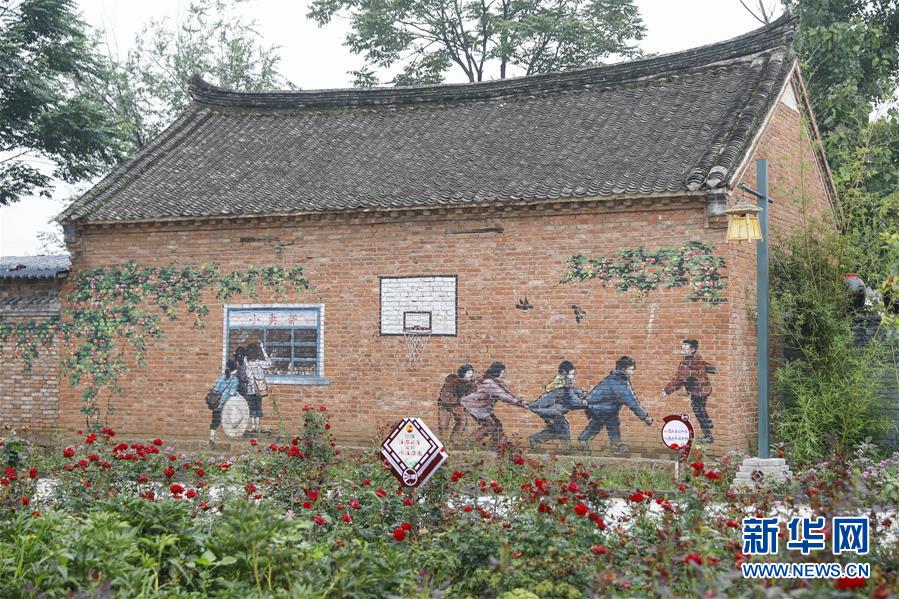 这是7月27日在平顶山市宝丰县石桥镇邢庄村拍摄的一栋老房子上的墙体画。 夏日时节,河南省平顶山市宝丰县石桥镇邢庄村花香四溢,绿树成荫。邢庄村是宝丰县一个以酿酒闻名的村庄。近几年,当地按照宝丰县推进美丽乡村建设的要求,增建公共设施,改善村容村貌,美化人居环境,展现出一幅秀美的乡村画卷。 新华社发(何五昌 摄)