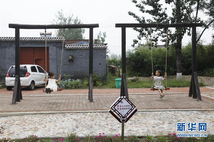 7月27日,在平顶山市宝丰县石桥镇邢庄村,两名小朋友在荡秋千。 夏日时节,河南省平顶山市宝丰县石桥镇邢庄村花香四溢,绿树成荫。邢庄村是宝丰县一个以酿酒闻名的村庄。近几年,当地按照宝丰县推进美丽乡村建设的要求,增建公共设施,改善村容村貌,美化人居环境,展现出一幅秀美的乡村画卷。 新华社发(何五昌 摄)