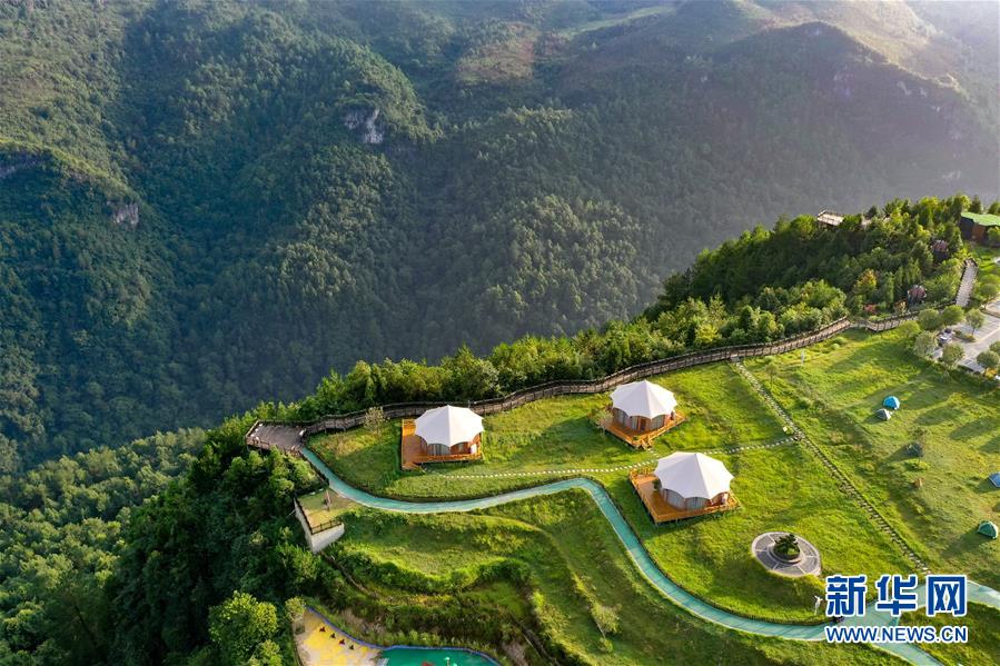 高坡乡山间晨景(7月28日摄,无人机照片)。 夏日时节,贵州省贵阳市花溪区高坡乡境内层峦叠嶂、满目翠绿,独特的高原景观吸引不少游客前来观光旅游。 新华社记者 刘续 摄