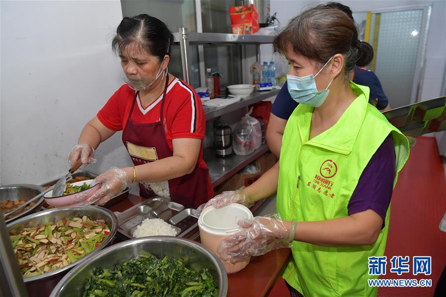 7月29日,在江西省南昌市东湖区彭家桥街道文教路北社区,“幸福食堂”的义工在给老人们打饭。 新华社记者 彭昭之 摄