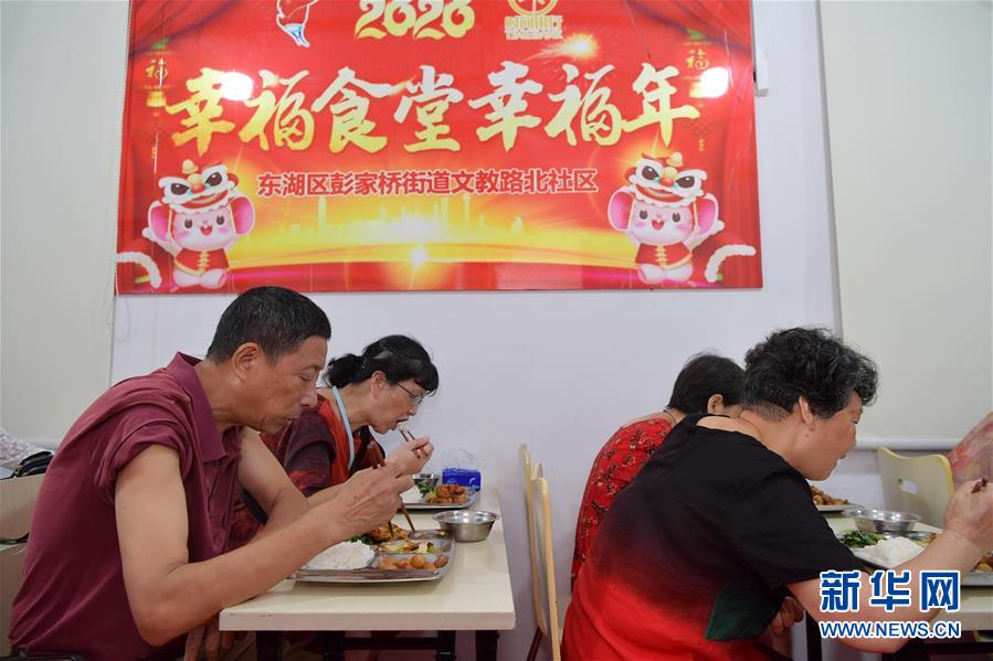 7月29日,在江西省南昌市东湖区彭家桥街道文教路北社区,老人们在社区的“幸福食堂”吃午饭。 新华社记者 彭昭之 摄