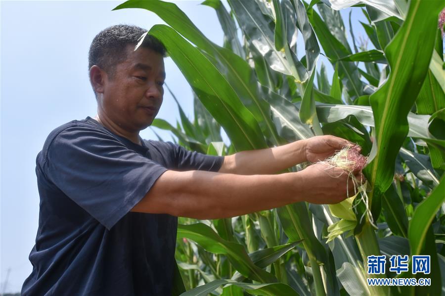 7月30日,在天津市武清区豆张庄镇,方海波在田地里了解玉米长势。