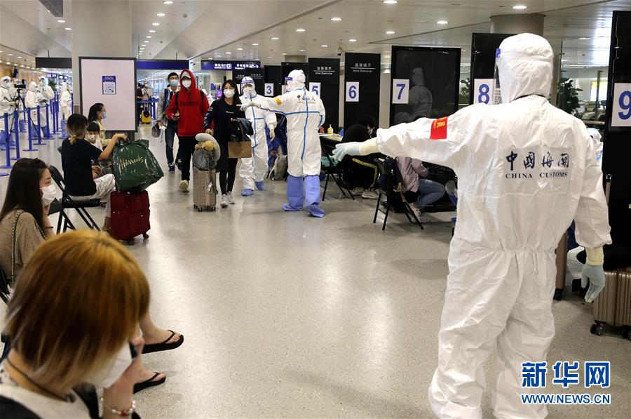 7月31日,上海浦东国际机场海关人员引导入境航班的旅客进行登记检查。 连日来,上海最高气温超过34摄氏度。在高温和疫情防控双重考验下,上海浦东国际机场海关、边检等一线工作者坚守岗位,保障旅客出行安全。 新华社记者 陈飞 摄