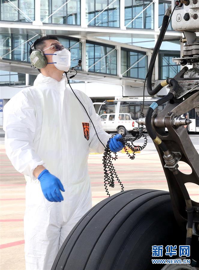 7月31日,上海浦东国际机场入境航班保障人员对进场飞机进行例行检查。 连日来,上海最高气温超过34摄氏度。在高温和疫情防控双重考验下,上海浦东国际机场海关、边检等一线工作者坚守岗位,保障旅客出行安全。 新华社记者 陈飞 摄