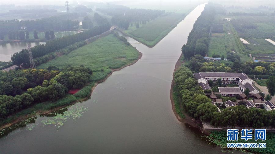 7月31日拍摄的天津市武清区永定河故道国家级湿地公园景色(无人机照片)。 新华社记者 马平 摄