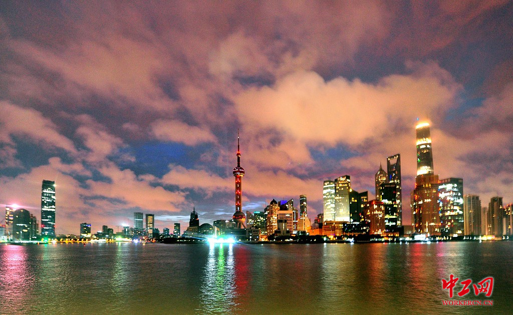 2020年7月31日,上海,清晨外滩浦江的天空红云满天,犹如上演精彩的云霞大戏。