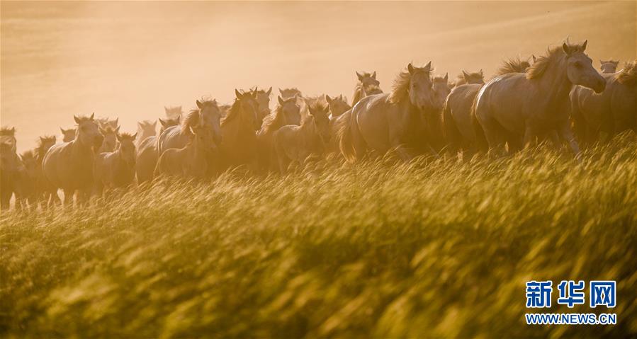 7月31日,草原上奔跑的马群。 当日,内蒙古西乌珠穆沁旗在巴彦胡舒苏木白马繁育基地的草原上进行套马活动,向广大游客展示套马技艺和草原民俗文化。 新华社记者连振摄