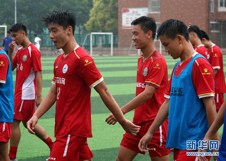 这是河南省实验中学高中足球队队员在训练结束后返回休息室(7月22日摄)。 新华社记者李安摄