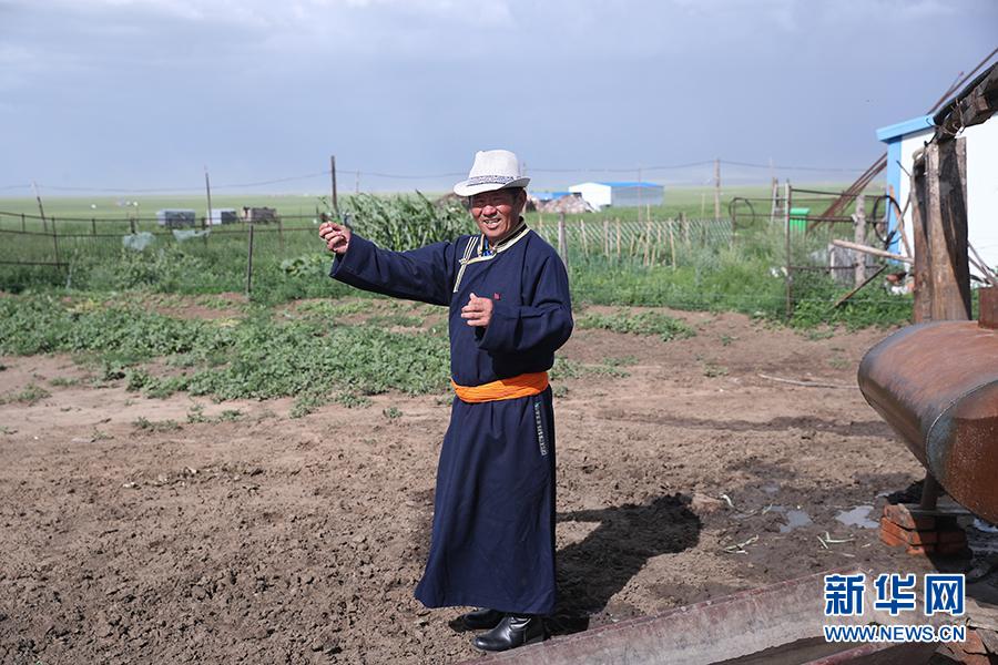 图为其日麦拉图在介绍自家牲畜牧养情况。新华网记者焦鹏摄