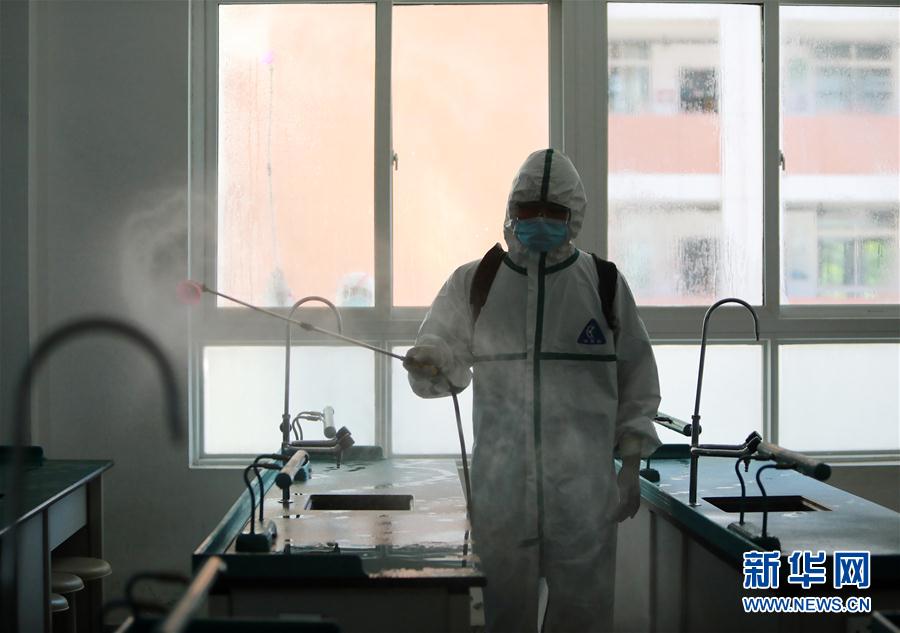 8月3日,消防员在武汉市第三寄宿中学实验室进行消杀作业。 新华社发(王方 摄)