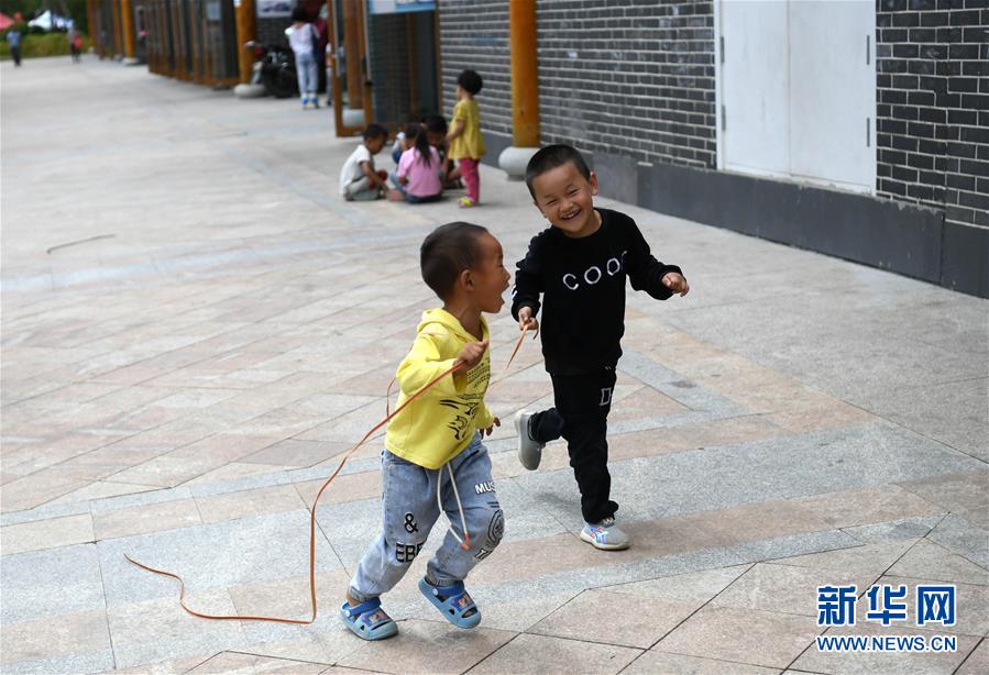 孩子们在柏杨林易地扶贫搬迁安置点玩耍(8月3日摄)。 贵州省毕节市七星关区柏杨林易地扶贫搬迁安置点是毕节市最大的易地扶贫搬迁安置点,总面积约1.1平方公里,从2017年开始至今,共有34个乡镇6372户29001人安置到位。 如今,安置点内教育、医疗、就业扶贫车间、长幼日间托养照料中心等设施齐全,搬迁群众在这里过上了安居乐业的幸福生活。 新华社记者 金良快 摄