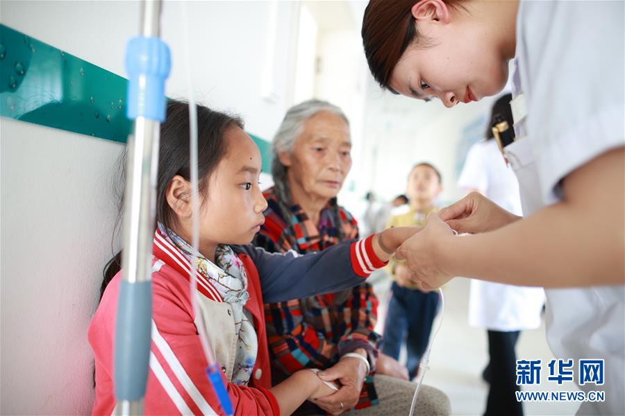 搬迁群众在柏杨林易地扶贫搬迁安置点卫生院内治疗(8月3日摄)。 贵州省毕节市七星关区柏杨林易地扶贫搬迁安置点是毕节市最大的易地扶贫搬迁安置点,总面积约1.1平方公里,从2017年开始至今,共有34个乡镇6372户29001人安置到位。 如今,安置点内教育、医疗、就业扶贫车间、长幼日间托养照料中心等设施齐全,搬迁群众在这里过上了安居乐业的幸福生活。 新华社记者 刘续 摄