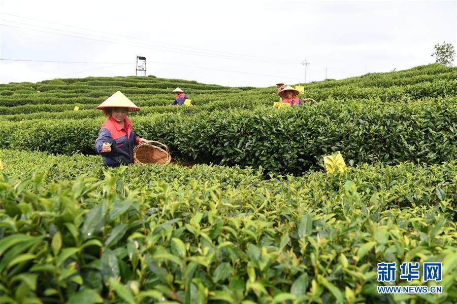 8月4日,女工在福鼎市佳阳畲族乡佳阳村丁家坪茶园采摘茶青。 近年来,福建省福鼎市佳阳畲族乡立足本地优势,大力发展特色农业、蓝色海洋经济和红色畲乡旅游,走出一条富有闽东特色的乡村振兴之路。2019年全年农民人均可支配收入17660元。 新华社记者林善传摄