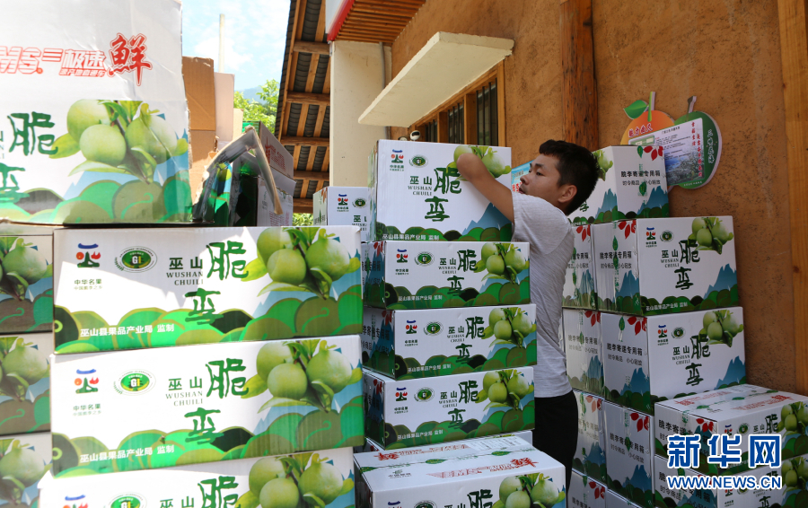 无臂小伙彭军是巫山县曲尺乡的村民,家里种植了十余亩李树,他便负责负责填写订单、理清账目,将李子发往各地。新华网发(卢先庆 摄)