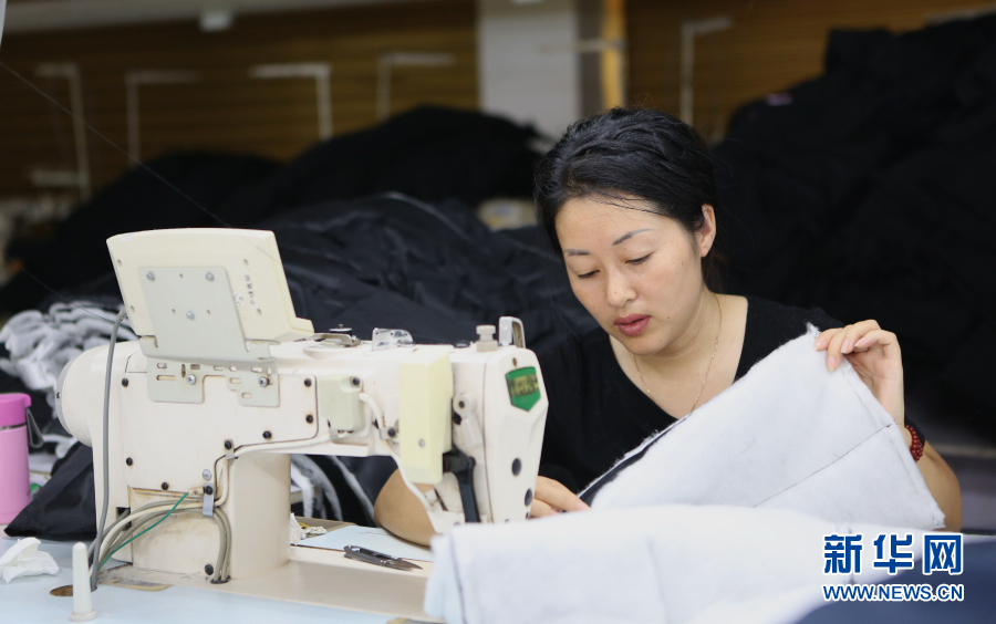 巫山官渡镇新建的服装厂让100多名群众实现了家门口就业,图为一名缝纫工人正在工作。新华网发(卢先庆 摄)